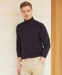 Cotton rich with double thickness rib roll neck. Reinforced shoulders and neck. Twin needle stitching. Hemmed cuffs.